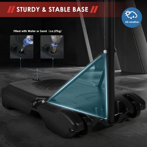 【STABILE STRUKTUR】Die untere Basis kann mit ca.37kg Wasser oder Sand gefüllt werden, um jedes Mal, wenn Sie den Ball treffen, eine gute Stabilität und Sicherheit zu gewährleisten. Die Doppelhalterungen arbeiten mit der flexiblen und robusten PE-Basis und der Stange zusammen, um eine dreieckige Stütze zu bilden.