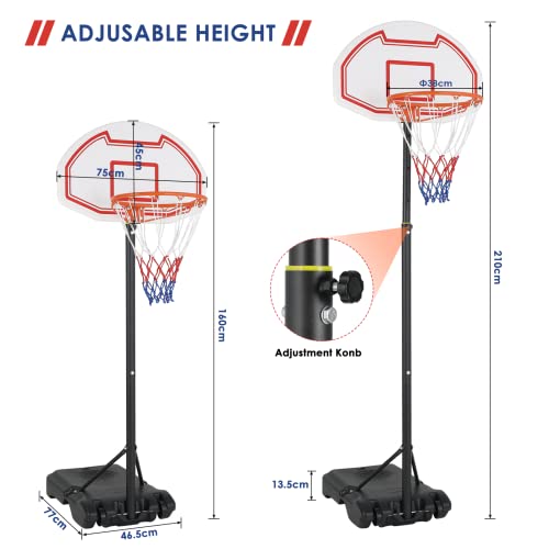 Specification: Basketballkorb, Transportable Basketballständer für Kinder, Höhenverstellbar, Tragbarer Basketballanlage mit Rädern, verstellbare Korbhöhe 160 bis 210 cm, zum , für Indoor und Outdoor