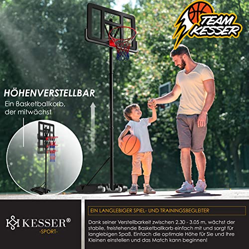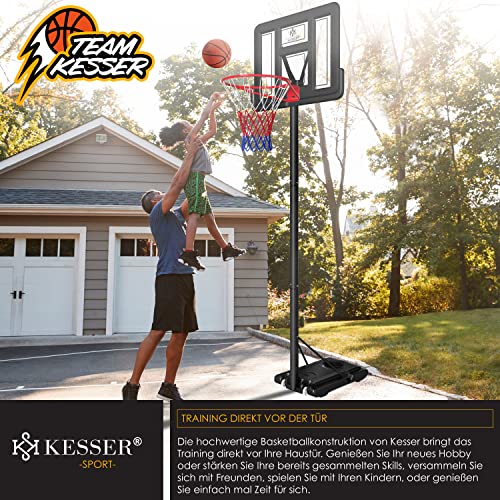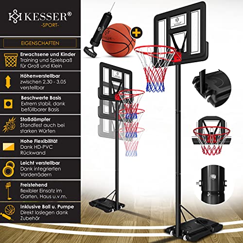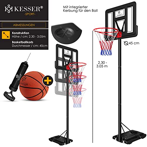 KESSER Basketballkorb Premium mit Ständer, höhenverstellbarer Spielspaß von 230-305cm für Groß und Klein, extrem stabil dank füllbarer Basis und Stoßdämpfern, mobil dank integrierten Vorderrädern, inkl. Ball und Pumpe