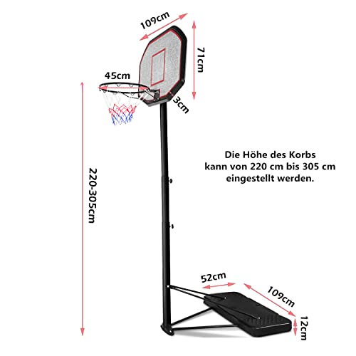 Specification: RELAX4LIFE Basketballständer höhenverstellbar 2,2-3,05 M, Basketballanlage mit Ständer, Basketballkorb für Kinder & Erwachsene, Rollbar für Indoor & Outdoor, befüllbar mit Wasser & Sand, Schwarz