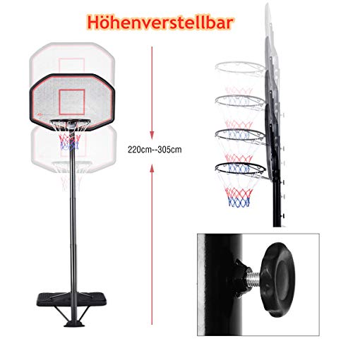 ★ Einstellbare Höhe zwischen 220 und 305 cm ★ Der Abstand zwischen Basketballkorb und Boden kann flexibel von 220 cm bis 305 cm eingestellt werden. Daher ist der Basketballkorb für Menschen unterschiedlicher Größe und unterschiedlichen Alters geeignet. Die Kinder, Jugendliche und Erwachsene können den Basketballkorb benutzen.