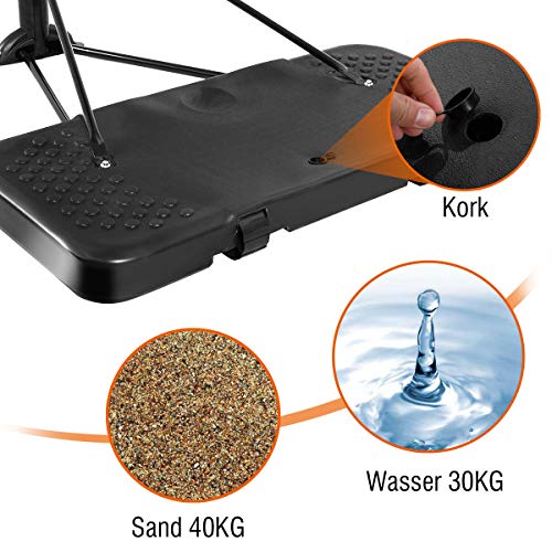★ Ideales Material und stabile Struktur ★ Unser Basketballständer besteht hauptsächlich aus PE und Stahlrohr mit guter Haltbarkeit. Dreieckige Verstärkung und verdicktes Stahlrohr sorgen für gute Stabilität. Zusätzlich kann der Basketballständer mit Wasser oder Sand gefüllt werden, was die Stabilität erheblich verbessert.