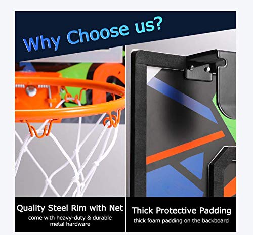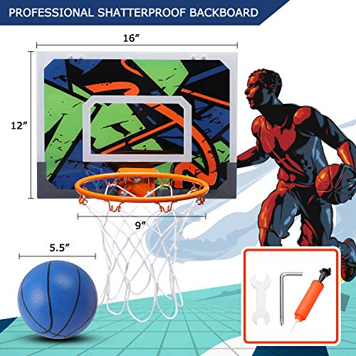 Specification: Warmfunn Pro Mini Basketballkorbset für Kinder – 16″x 12″ Basketballkorb für Tür & Wand – 2 Gummibälle und 1 Luftpumpe – Geschenke für Kinder