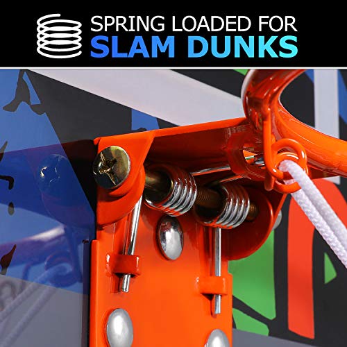 【Bruchsicher & Doppelte Federfelge & Sicherheit】Das 16 “x 12” Backboard besteht aus einem bruchsicheren Polycarbonat. Auf der Rückseite befindet sich eine Schaumstoffauskleidung, die die Wand oder Tür vor Beschädigungen schützt. Doppelte Federfelge, die 3-Punkt-Schlägen und Slam Dunks standhält.