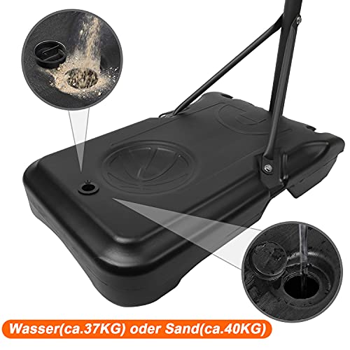 Mit beschwerbaren Wasser oder Sand befüllte Sockel für optimale Standsicherheit: Der sichere Standfuß aus stabilem Vinyl wird einfach mit Wasser oder Sand befüllt. Der Sockel ist ungefähr 37 kg schwer wenn es mit Wasser befüllt ist, mit Sand kann es 40 kg überschreiten