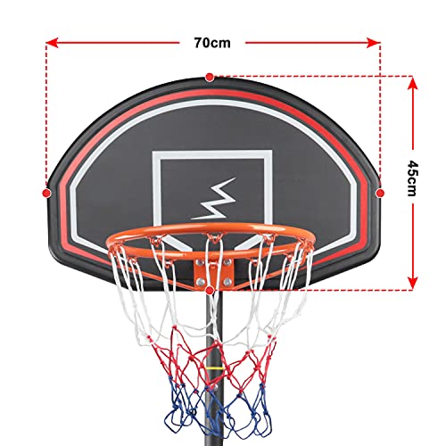 Widerstandsfähig und Multifunktional: Das Widerstandsfähige Basketballbrett 70 x 45 cm besteht aus robustem Kunststoff. Der Basketballkorb verfügt über einen pulverbeschichteten Metallring in 1,6 cm Stärke und mit 42,5 cm Ringdurchmesser, mit Netzösen und 53 cm langem Netz, geeignet für Basketball der Größe 3-7