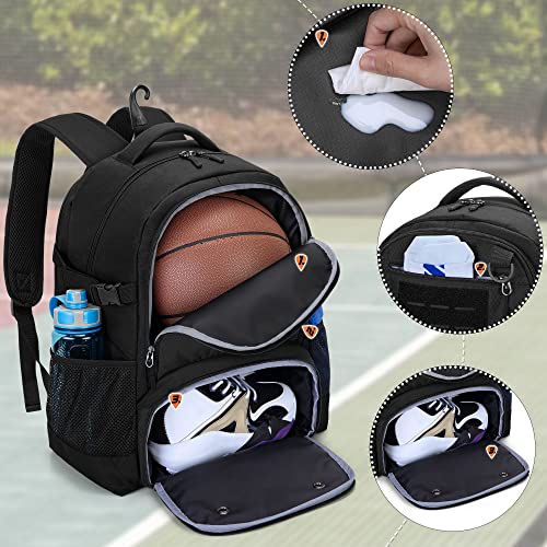 DSLEAF Basketball Rucksack, Fußball Rucksack mit Ballfach & Schuhfach für Basketball, Fußball, Volleyball